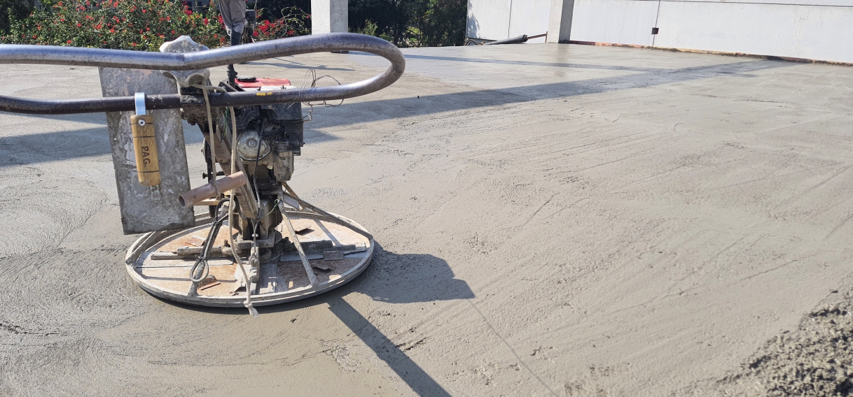 O concreto deve ser aplicado de forma contínua e corretamente nivelado para garantir uniformidade.